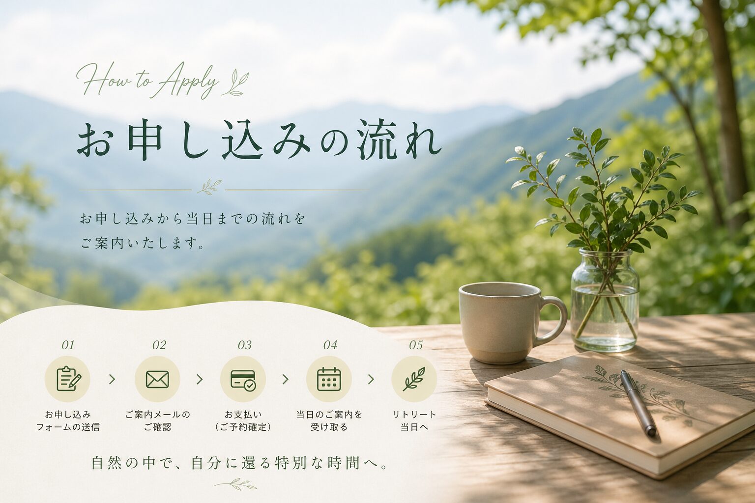 お申し込みとご入金の完了をもちまして、An*effect『内なる地図の再起動』リトリートへのご予約が正式に確定いたします。